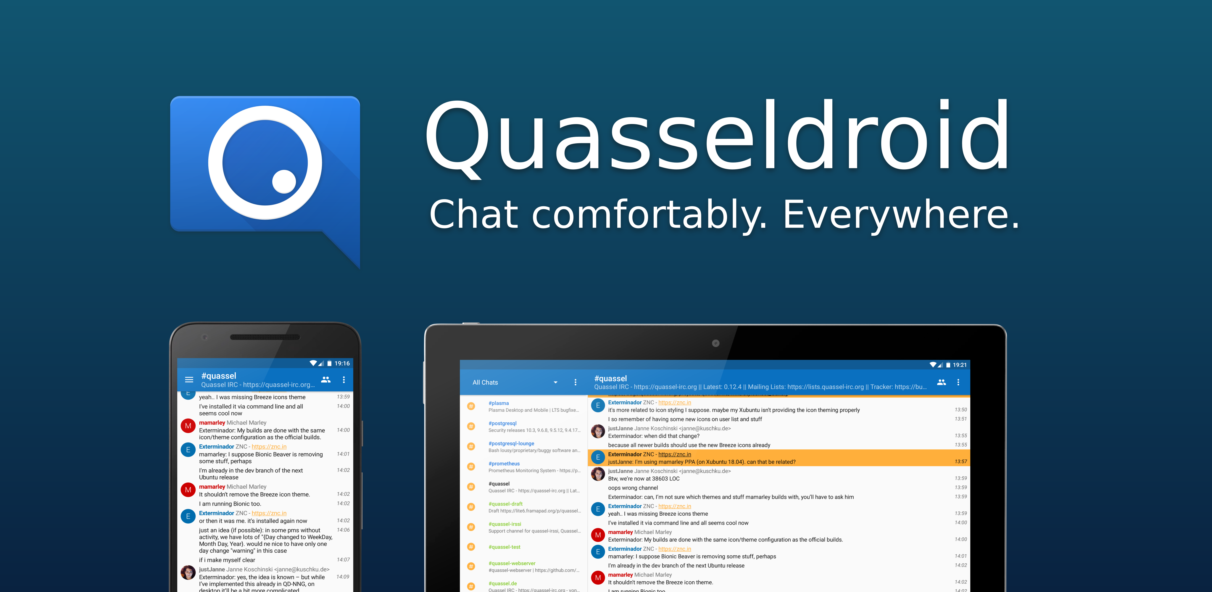 Quassel is a distributed, decentralized IRC client, written using C++ and Qt. Quasseldroid is a pure-java client for the Quassel core, allowing you to connect to your Quassel core using your Android™ phone.
